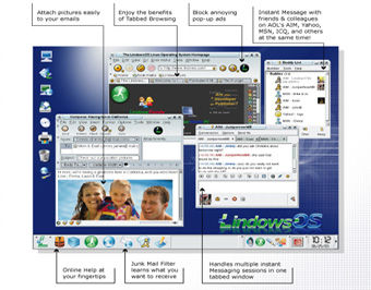 Lindows OS4 LindowsOS is a new, affordable, fun, and exciting operating system that delivers the power, stability and cost-savings of Linux with the ease of a windows environment. LindowsOS is easy to experience with its colorful, friendly interface. With its simple 10-minute installation, even computer novices can enjoy this modern, next-generation operating system with just a few simple clicks of their mouse. The LindowsCD allows Microsoft Windows users to experience LindowsOS by trying it on their current computer without removing or affecting their existing Microsoft® Windows system in any way. Simply run the included FREE Bonus "LindowsCD." (51.97)US$+ S&H |